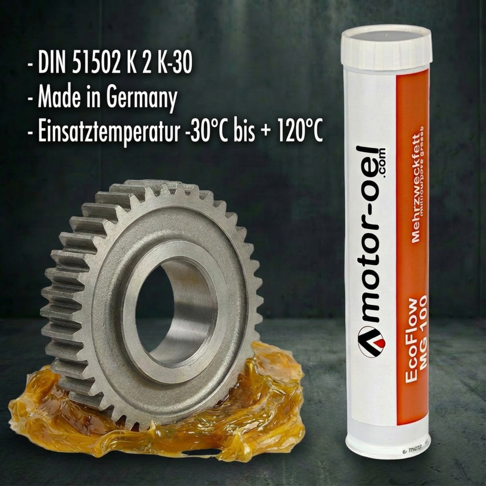 - Temperaturbereich: Einsetzbar von −30°C bis +120°C, Tropfpunkt bei 190°C