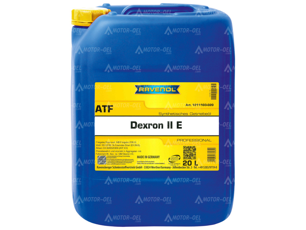 RAVENOL ATF Dexron II E ist eine sehr hochwertige synthetische Getriebeflüssigkeit für automatische Getriebe sowie Wandler- und Lastschaltgetriebe von Fahrzeugen mit den Spezifikationen GM Dexron II E, Ford und Allison C 4.