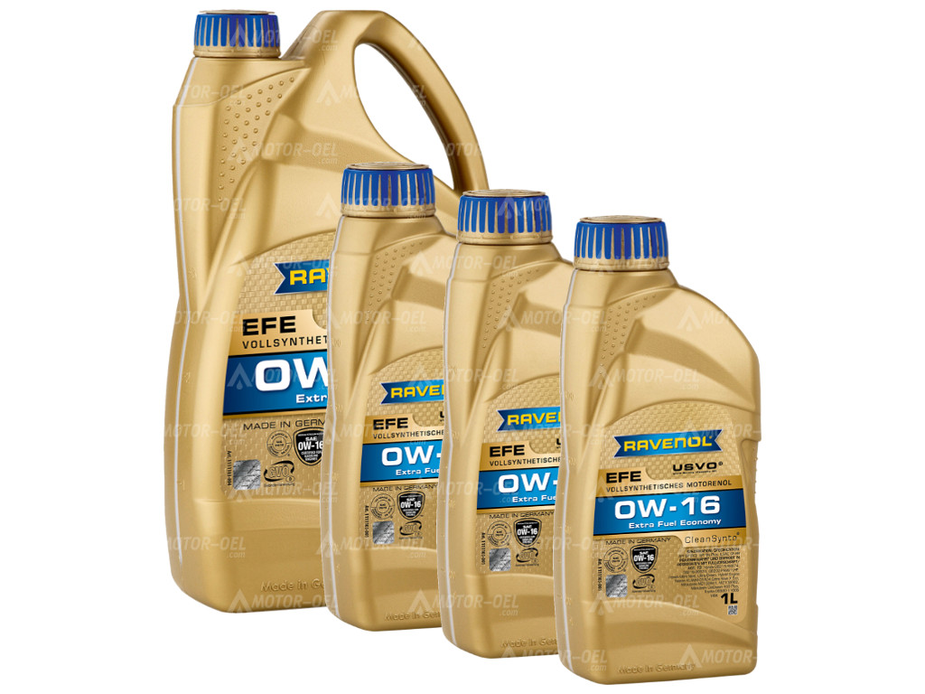 RAVENOL Extra Fuel Economy EFE SAE 0W-16 eignet sich als Hochleistungs-Leichtlauf-Motorenöl für anspruchsvolle Motoren. Es wird für moderne PKW Benzinmotoren, einschließlich der Turboversionen und für Direkteinspritzermotoren und Hybrid-Fahrzeuge unter allen Betriebsbedingungen empfohlen, wenn vom Motorenhersteller ein Low-Viscosity-Öl der Viskositätsklassen SAE 0W-16, SAE 0W-20 oder SAE 5W-20 empfohlen wird. Es ist ebenso für die Verwendung in Hybridfahrzeugen verschiedener Hersteller geeignet.